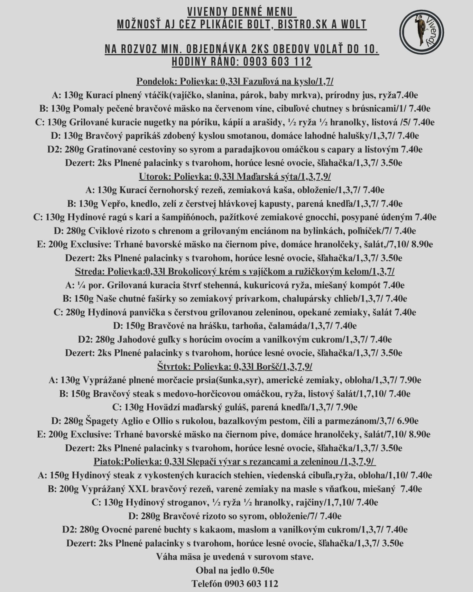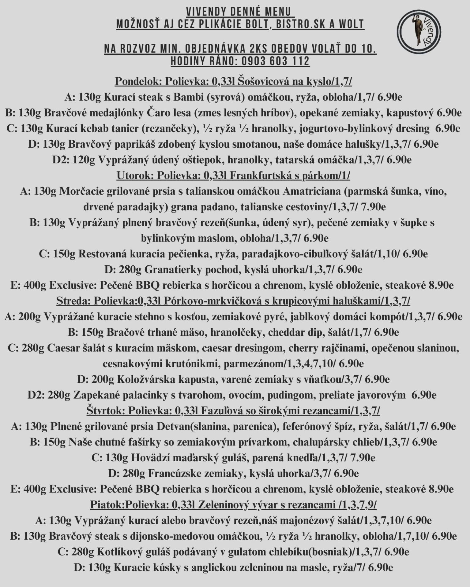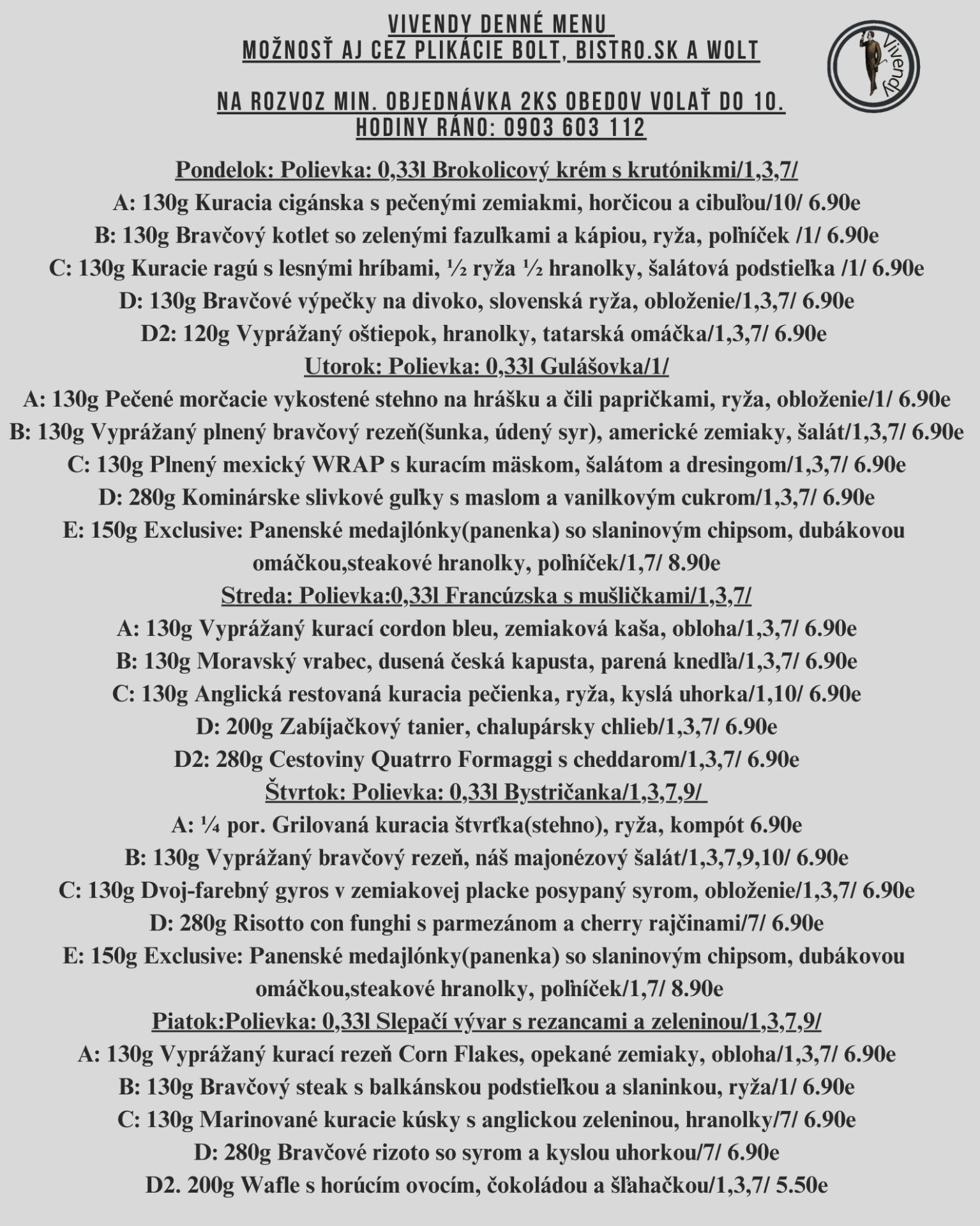 možnosť objednať jedlo aj tu stačí kliknúť : https://order.site/restauracia-vivendy