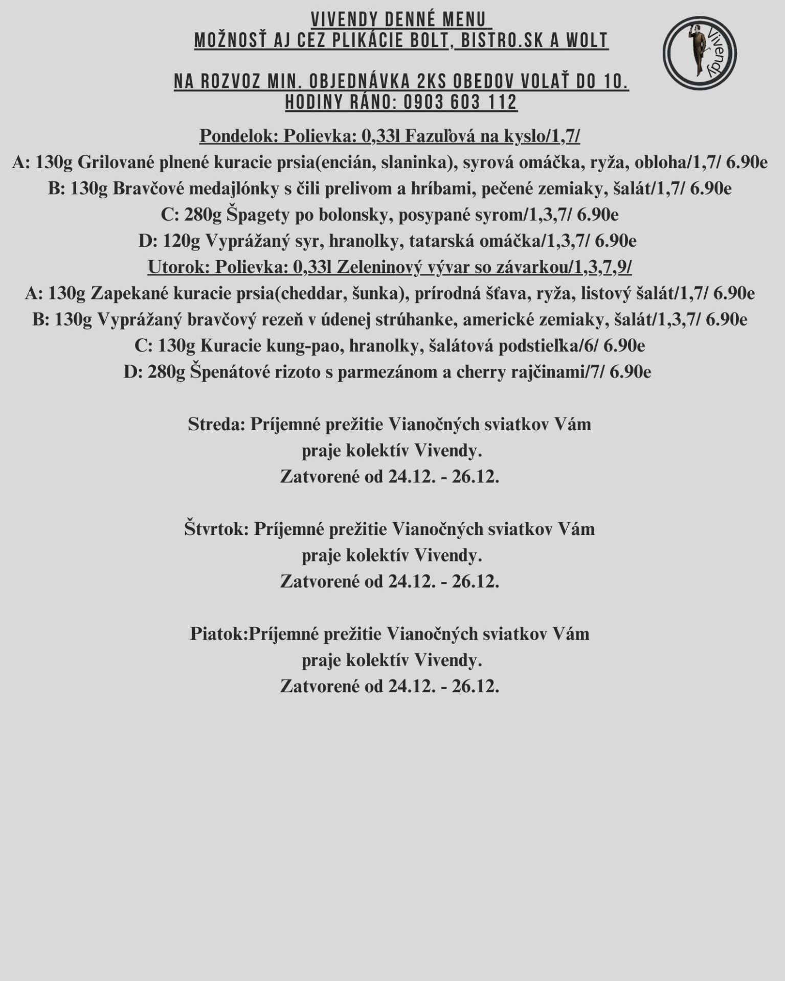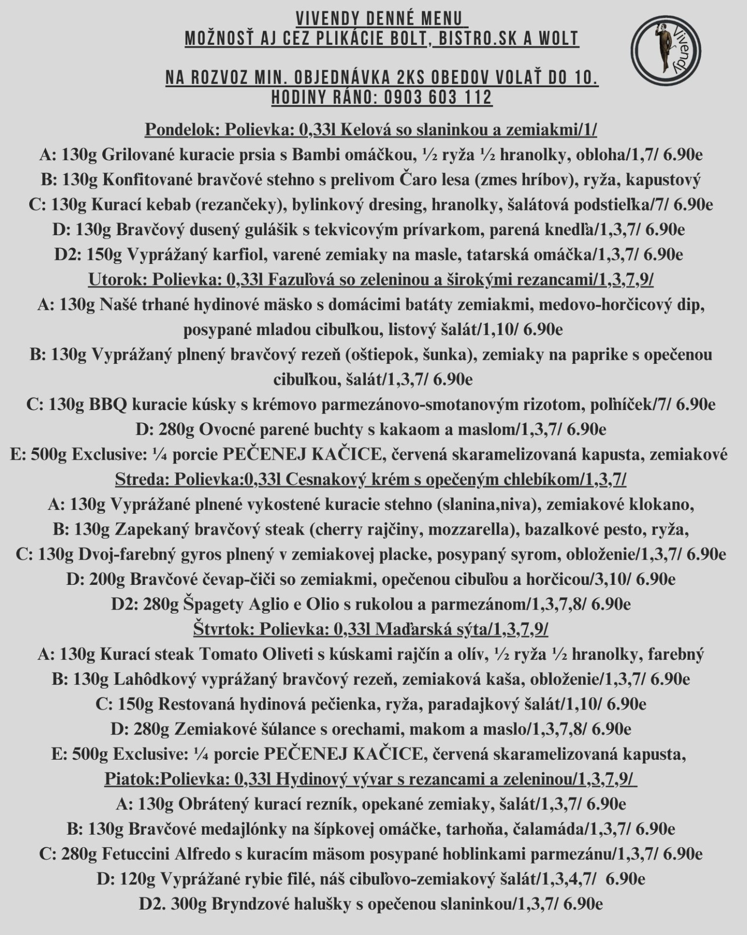 Pre rozvoz je možné objednať si jedlá len z aktuálneho denného menu.